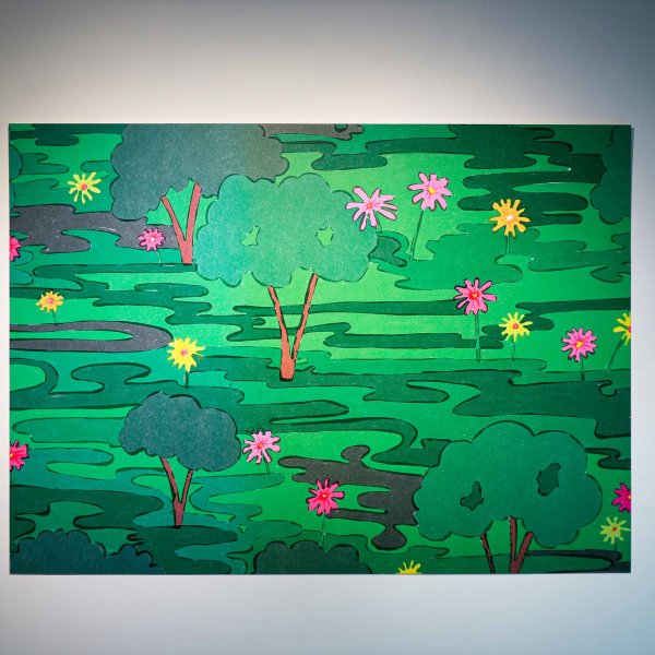 < Alja Horvat, Polje rož, 2023, digitalna risba.