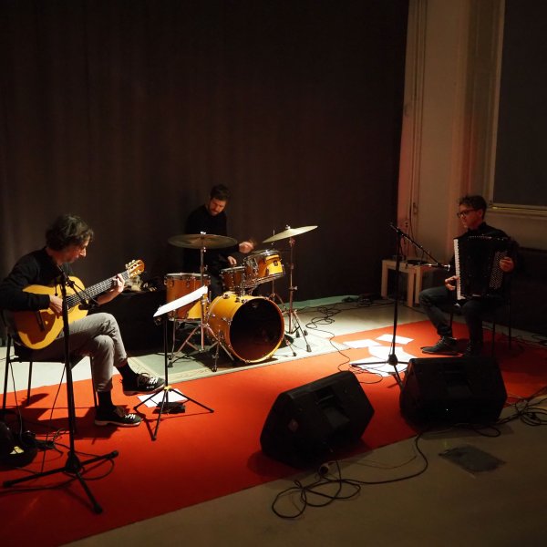 Marko Brdnik (harmonika), Uroš Rakovec (kitara) in Gašper Peršl (bobni) delujejo kot solisti, komorni in studijski glasbeniki. Vsak zase in včasih skupaj igrajo v različnih domačih in mednarodnih avantrockerskih, jazz, etno-jazz in drugih že večkrat nagrajenih zasedbah ter ustvarjajo glasbo za gledališke in plesne predstave in filme. Brdnik in Rakovec sta uigrana glasbena naveza, njuno ustvarjanje je leta 2016 dalo svojstveni zvok albumu z naslovom Leta, s katerim sta navdušila tako poslušalce kot kritike. Mojstrsko se izogibata stereotipom, kakršnih smo vajeni iz zasedb, v katerih imata osrednjo vlogo harmonika in kitara, njun prepoznavni zvok pa je z dodatkom Peršlovih bobov pridobil na dinamiki, s svojeglavo in stilsko neopredeljeno glasbeno govorico pa trio tako nagovarja širše, tudi mlajše občinstvo.
