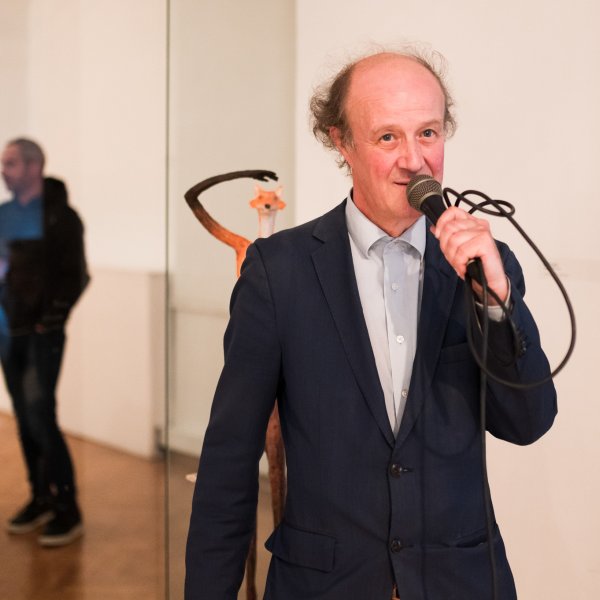 Likovna govorica letošnjega dobitnika Glazerjeve listine je samosvoja in prepoznavna, sedanjost premleva s klasičnimi postopki, citira staroveško in antično umetnost, kombinira tradicionalne likovne tehnike in materiale s sodobnimi in ob soočenju s socialnimi in z eksistencialnimi okoliščinami reflektira realnost ter tematizira in nemalokrat tudi ironizira aktualno dogajanje in naznanja prihodnost človeške družbe, ki je seveda odvisna od nas. Umetniško kodira stanje sveta, zlasti ljudi in človeka, izpostavi antropološko in psihološko dimenzijo in ju nemalokrat združi v živalskih podobah, hibridih, nemara klonih, kot ustreza njegovim zaznavam in videnjem.